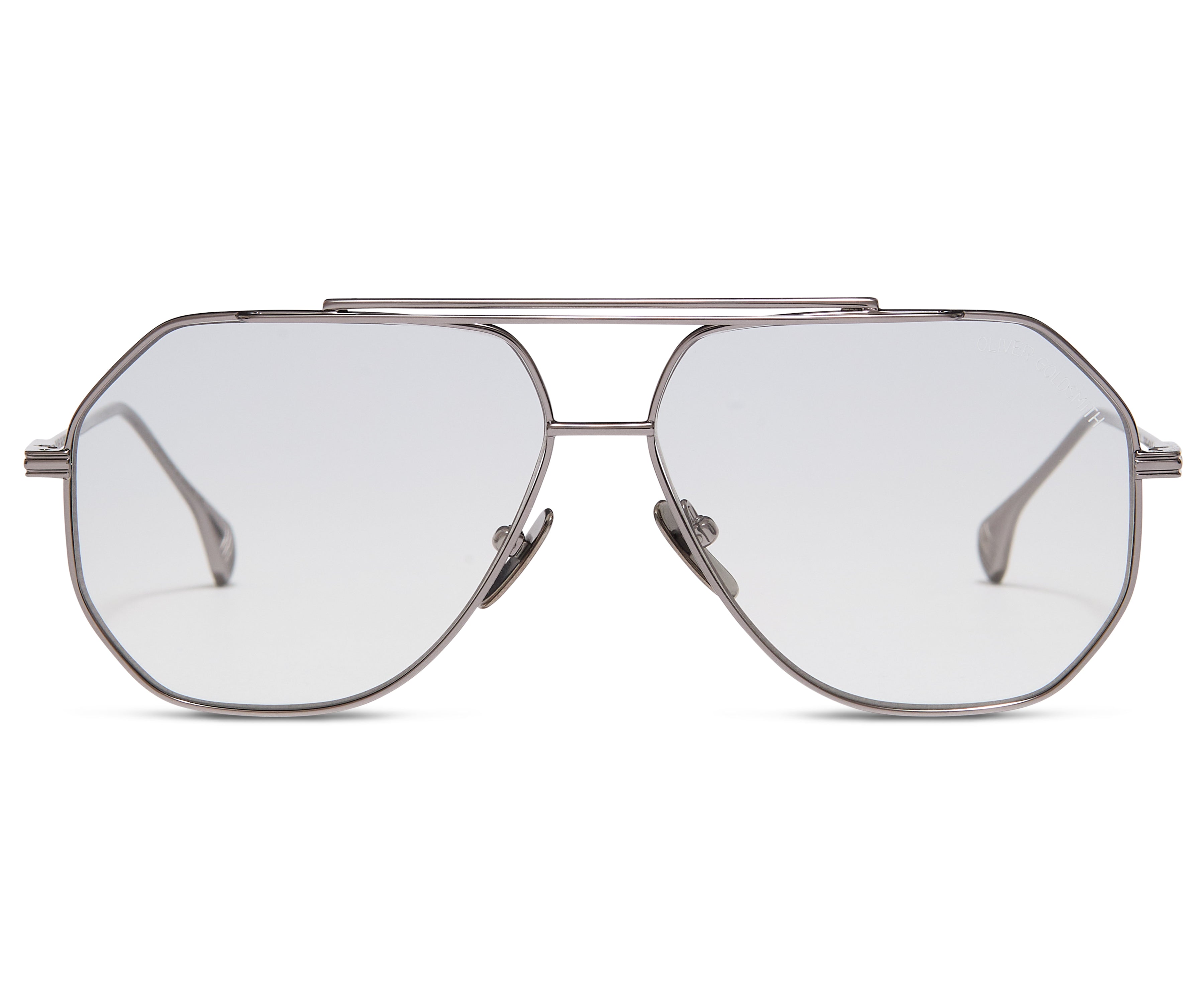 Handmade in Japan from premium lightweight titanium, fitted with CR39 sun lenses featuring custom Oliver Goldsmith engraving and adjustable titanium nose pads feature for superior fit and feel.
