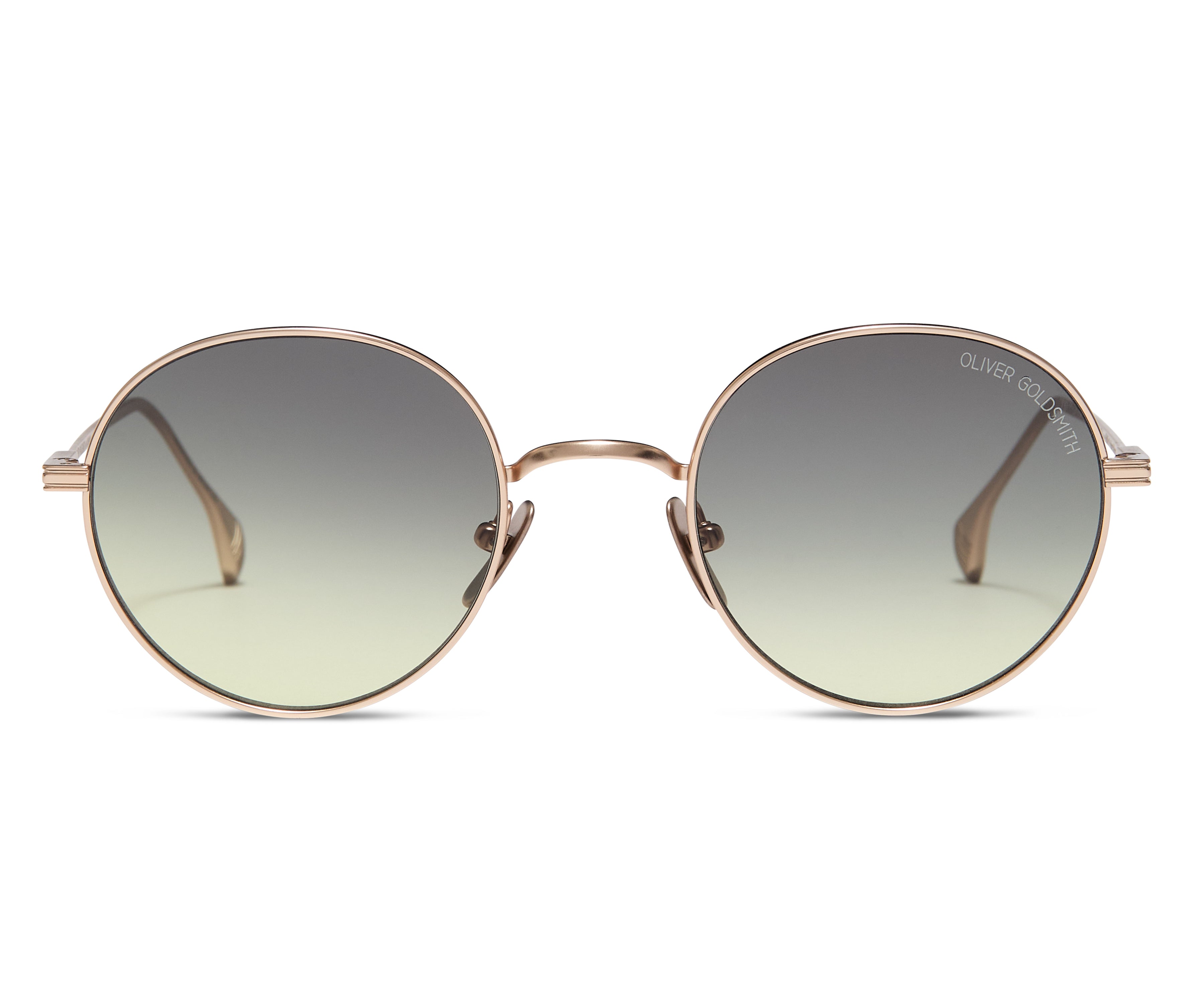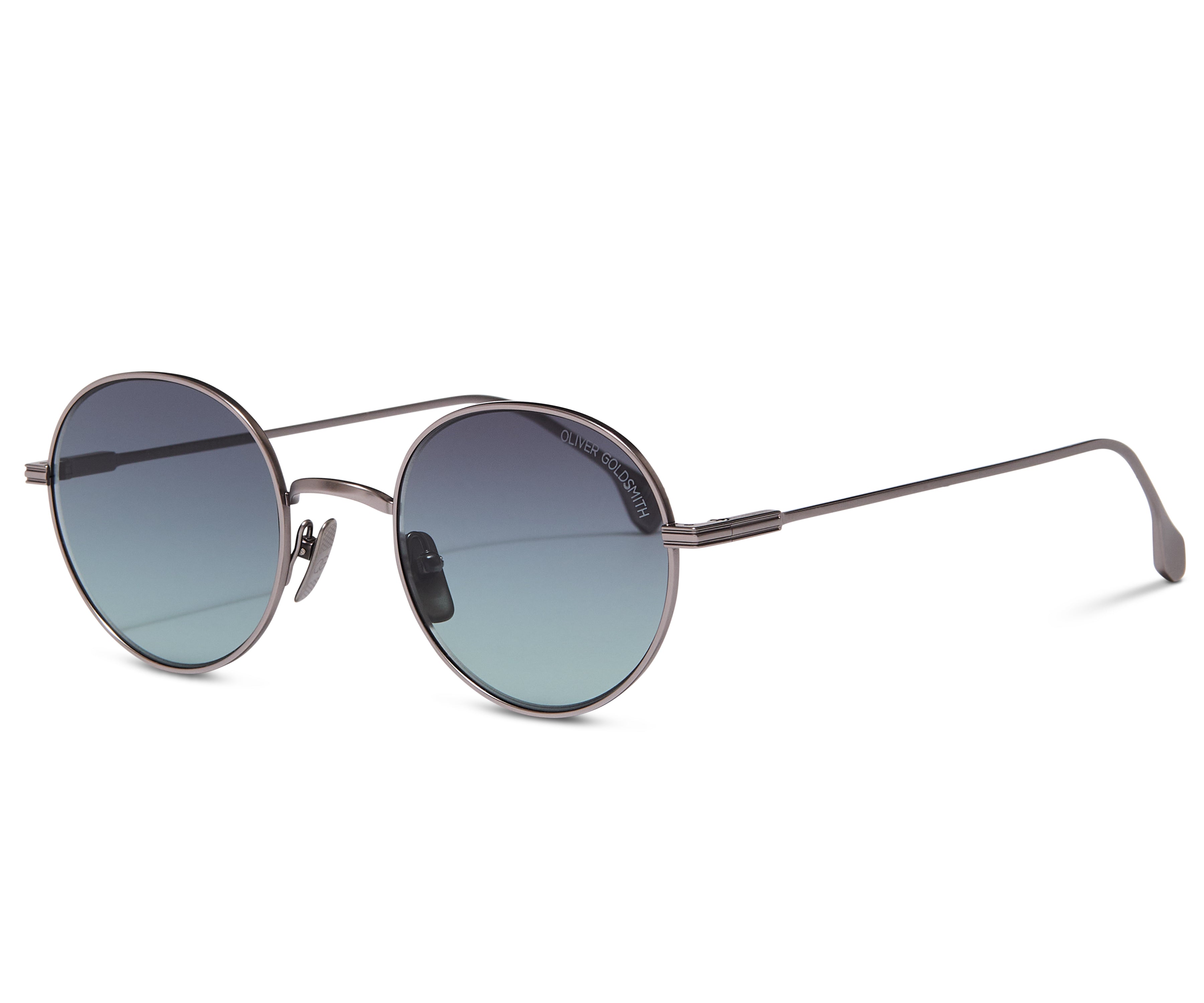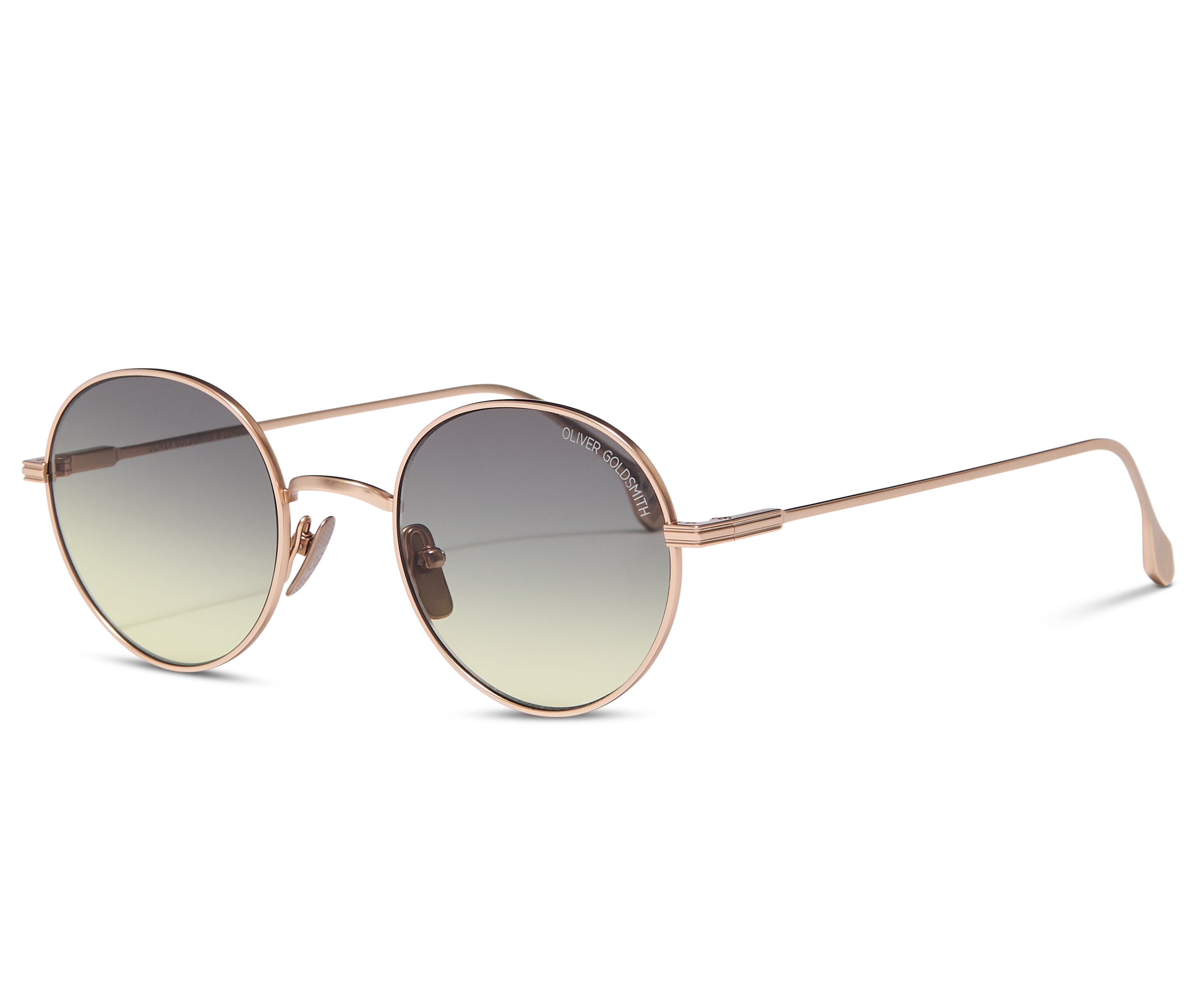 Handmade in Japan from premium lightweight titanium, fitted with CR39 sun lenses featuring custom Oliver Goldsmith engraving and adjustable titanium nose pads feature for superior fit and feel.