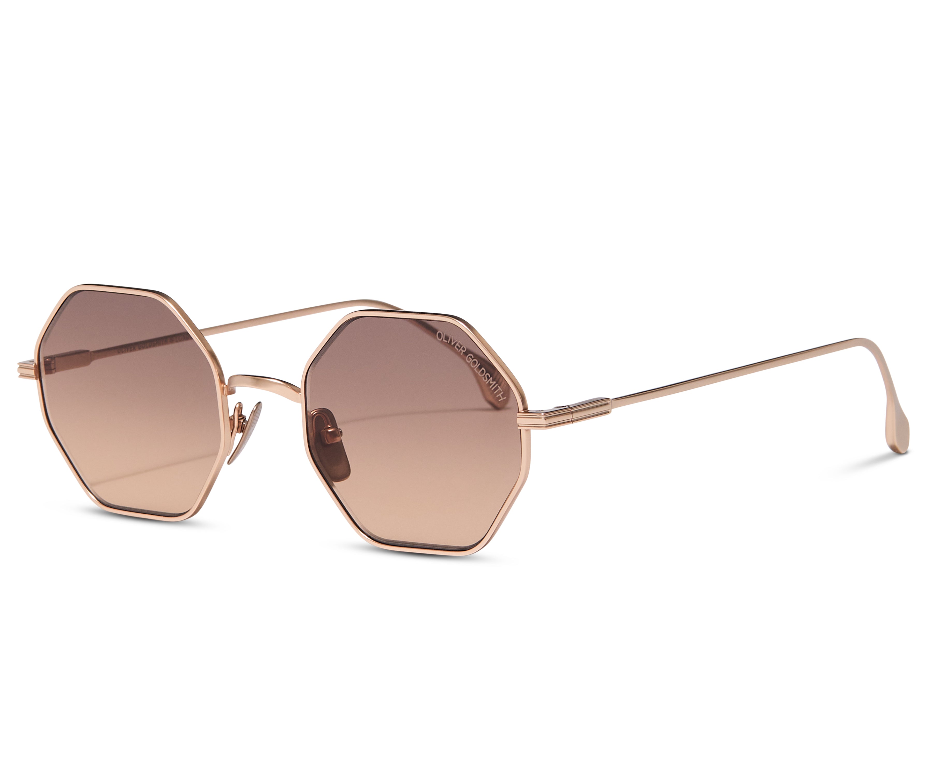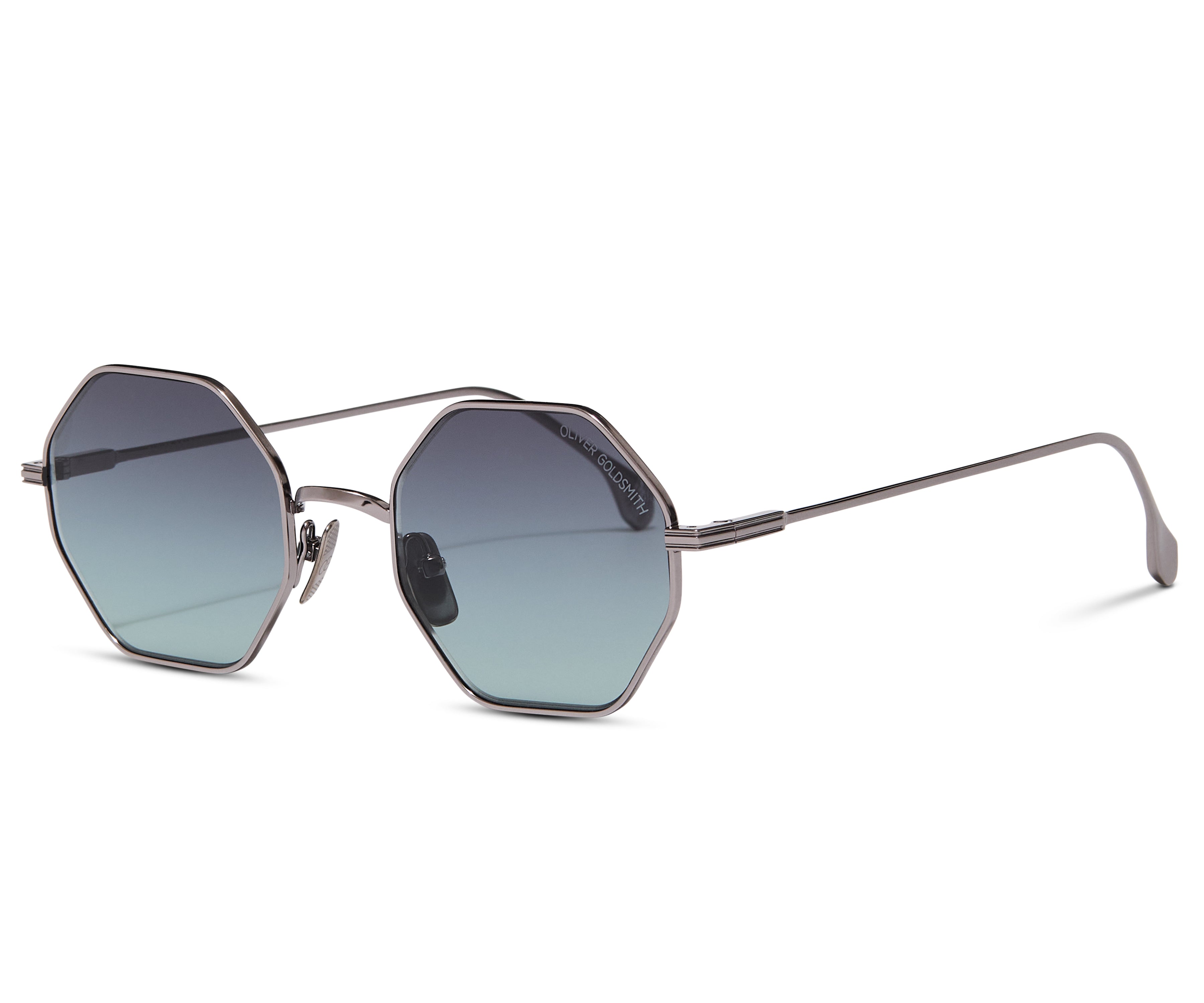 Handmade in Japan from premium lightweight titanium, fitted with CR39 sun lenses featuring custom Oliver Goldsmith engraving and adjustable titanium nose pads feature for superior fit and feel.