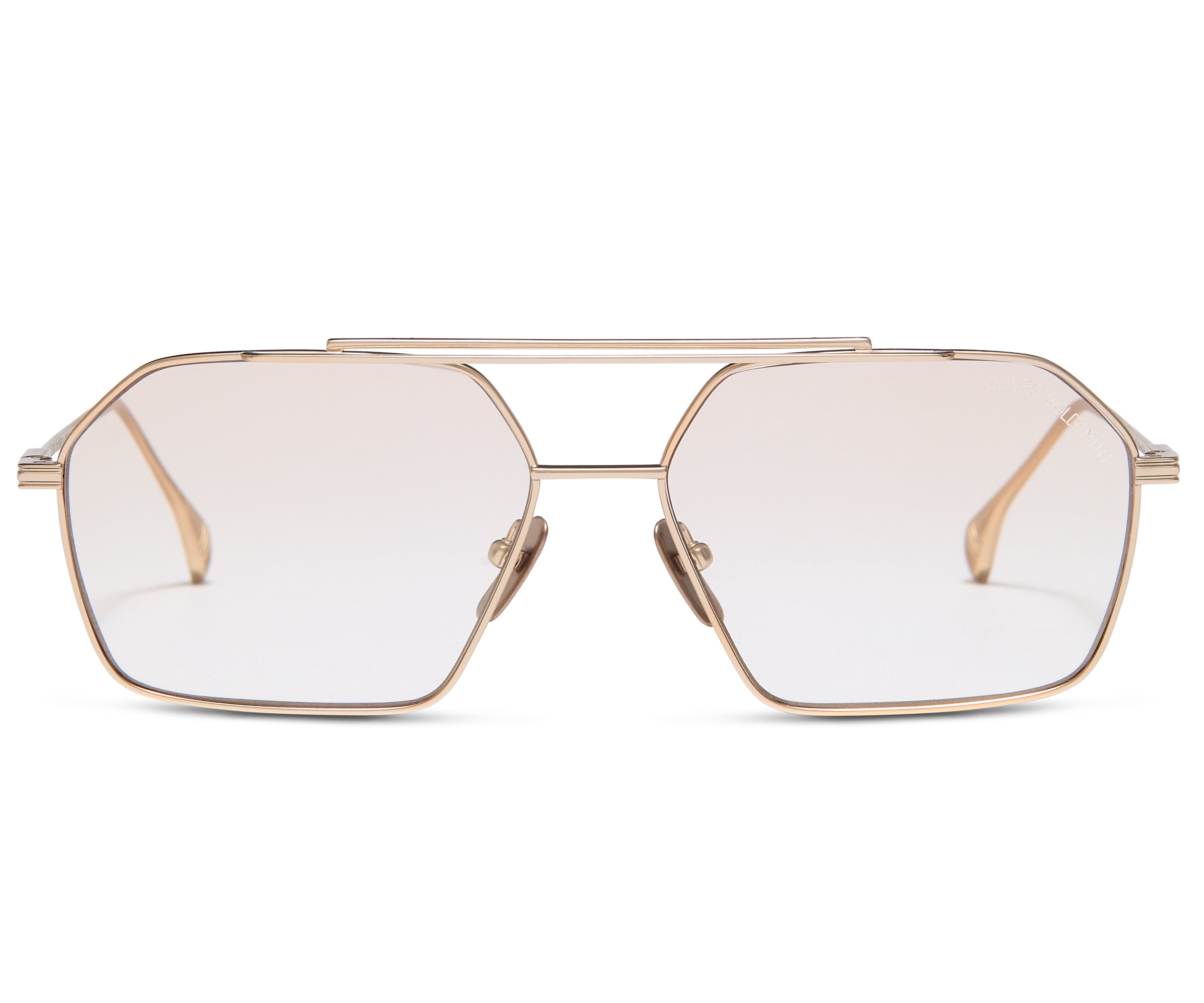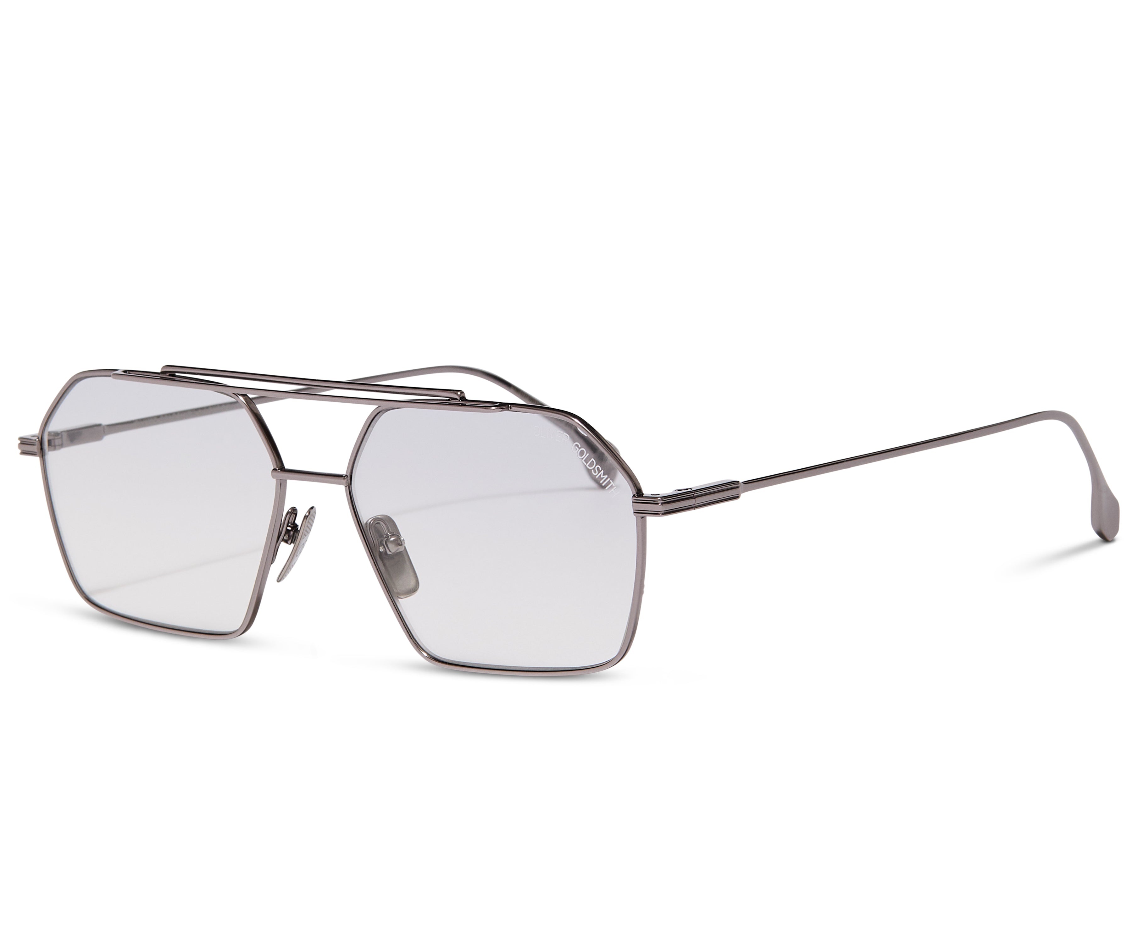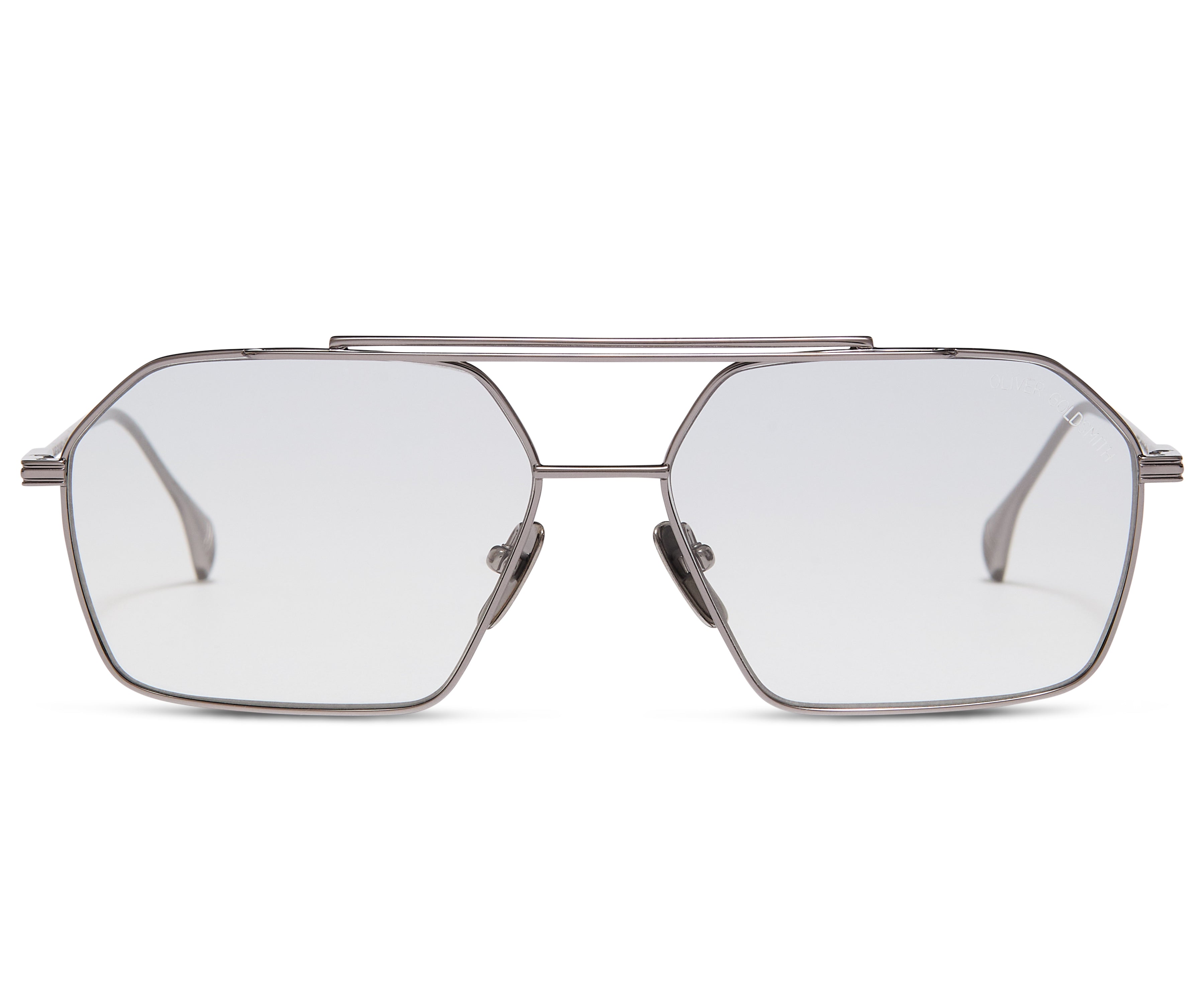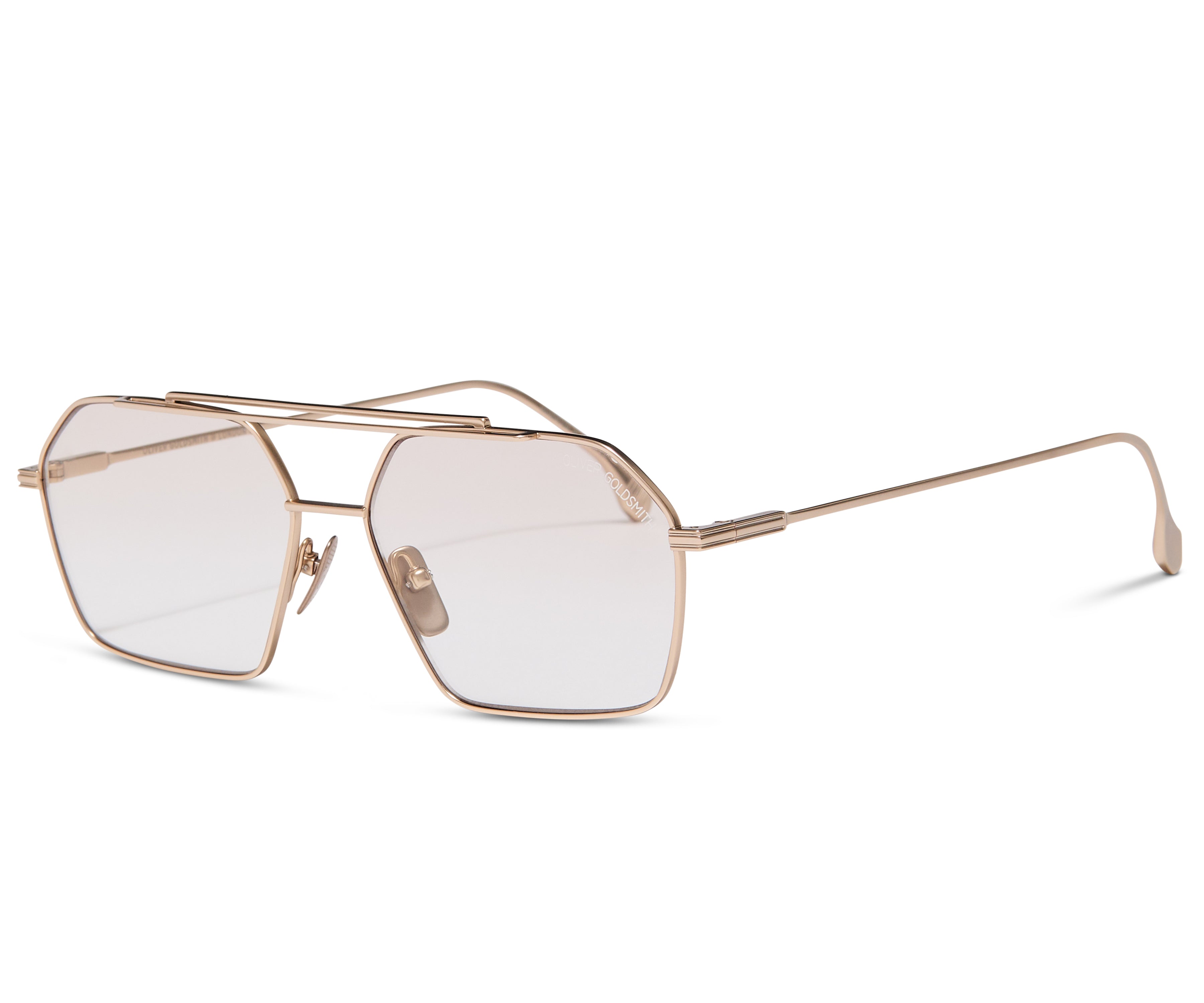 Handmade in Japan from premium lightweight titanium, fitted with CR39 sun lenses featuring custom Oliver Goldsmith engraving and adjustable titanium nose pads feature for superior fit and feel.